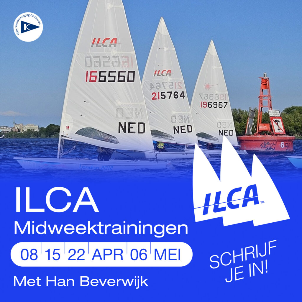 WV De Koenen en Coach4Sailing organiseren in het voorjaar ILCA midweektrainingen op de Nieuwe Meer. Onder begeleiding van ervaren coach Han Beverwijk werk je gericht aan snelheid, techniek en tactiek, precies wat je nodig hebt om sterker aan de start te verschijnen dit seizoen.