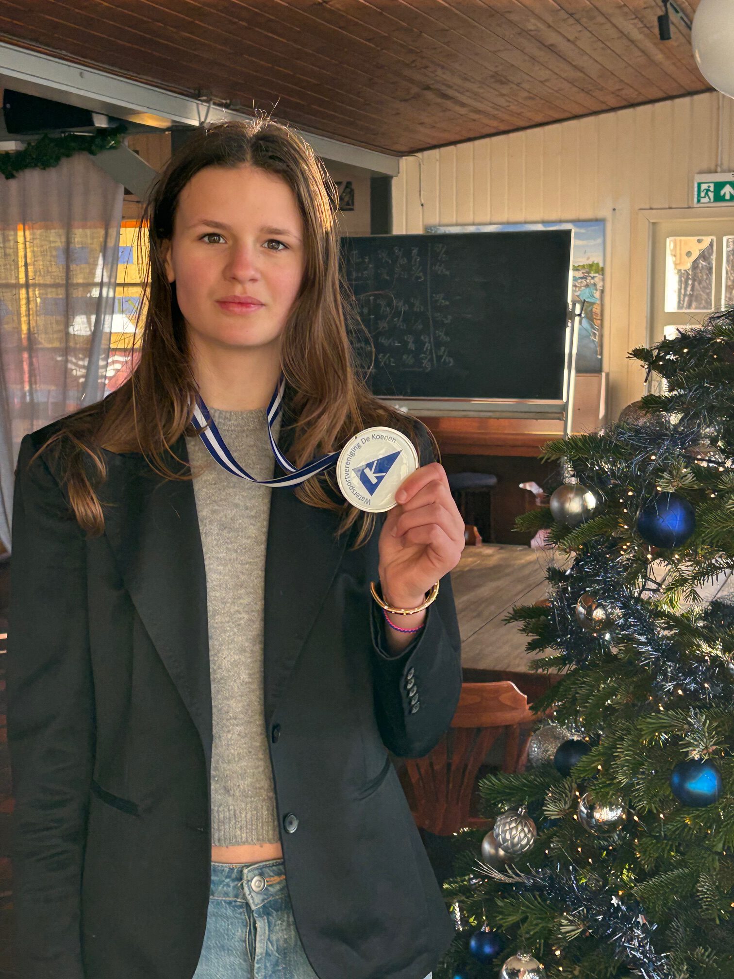 “Sophie Noor, Je wordt gehuldigd voor je enorme groei, je consistent hoge scores, en je internationale zichtbaarheid waarmee je de Cadet-klasse en De Koenen een groot plezier doet. Op basis van deze én andere prestaties is De Koenen bijzonder trots op jullie. Daarom kennen wij jullie dit jaar de belangrijkste trofee van onze vereniging toe.”